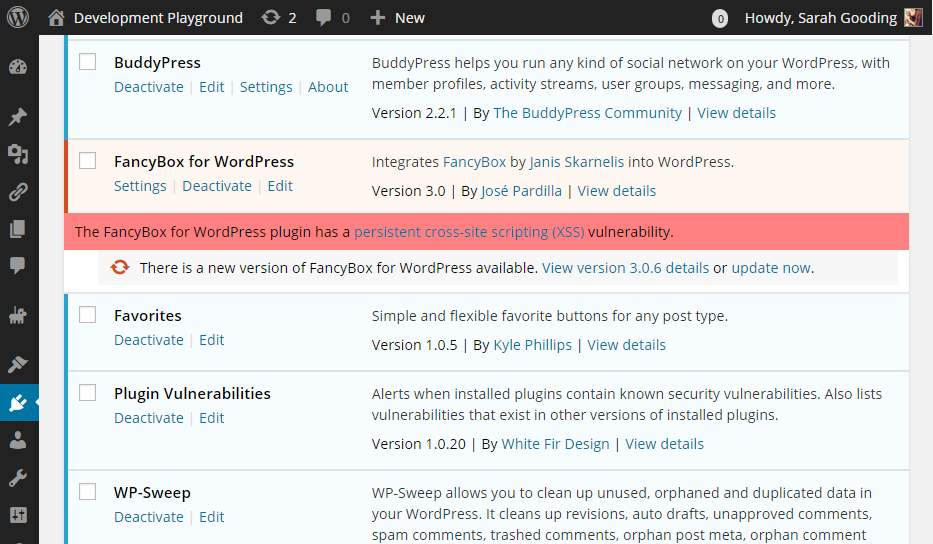 Updating software for security issues is a natural part of life on the web. With the popularity of WordPress at an all-time high, the discovery of vulnerabilities in core and third party extensions is only going to increase. If you feel overwhelmed by keeping up with security updates, the Plugin Vulnerabilities plugin can help you be more responsive to potential threats.