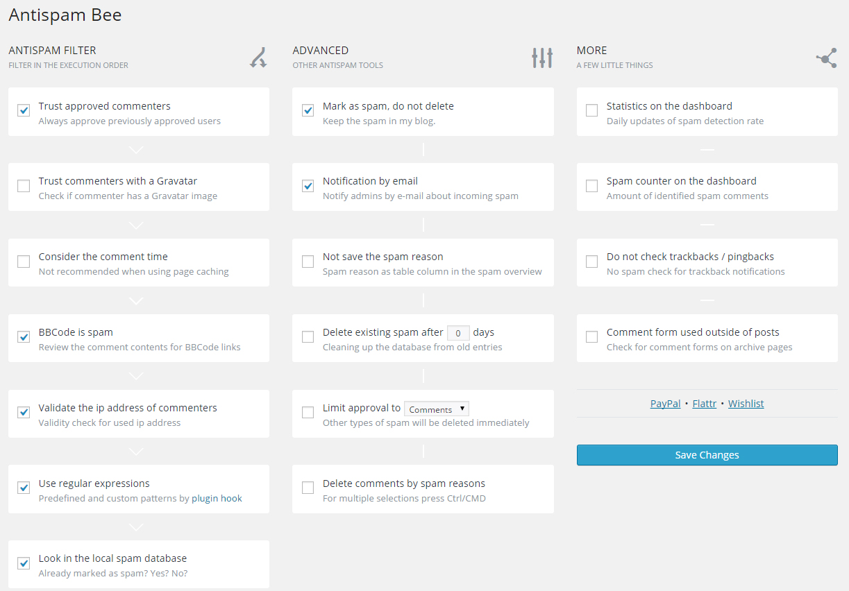 English speakers who use Jetpack Comments often use Akismet, since the two work together seamlessly. Akismet is far more well-known, since it comes packaged with WordPress by default. However, Antispam Bee has a solid set of features that make it a decent alternative: