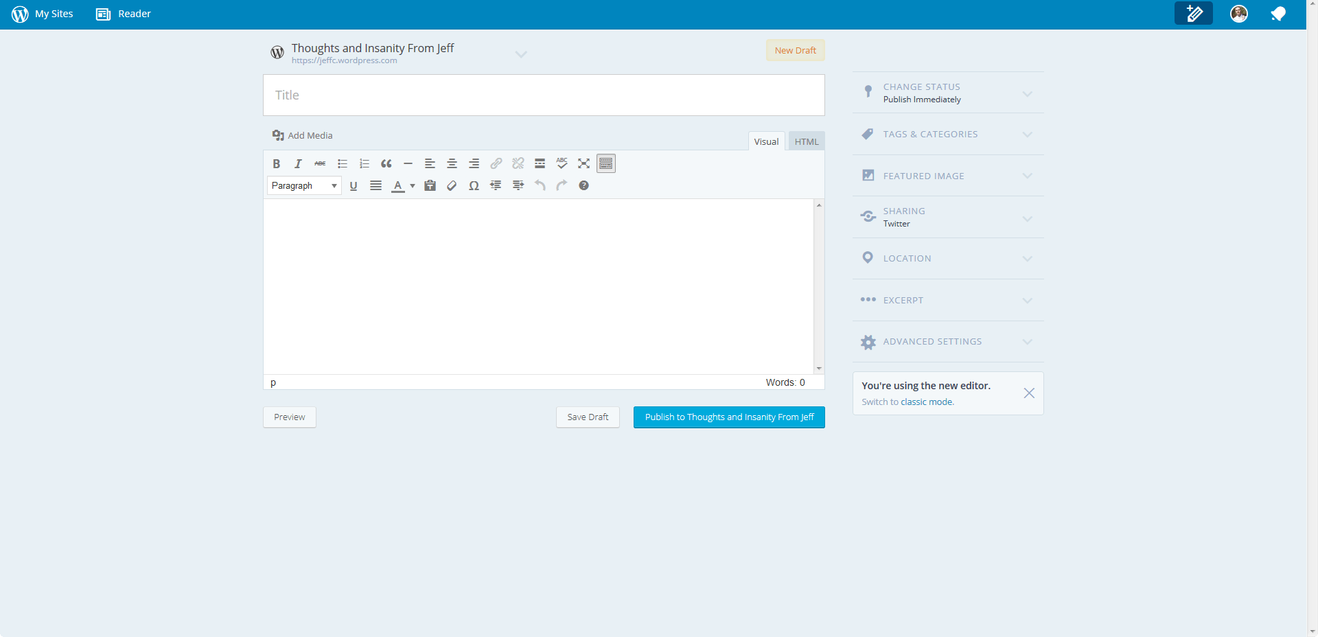 If it takes more than a few seconds to load the editor, that’s too long. With all of the server resources that make up the WordPress.com infrastructure, I expect things to load quickly. In reality, I shouldn’t see a loading screen.